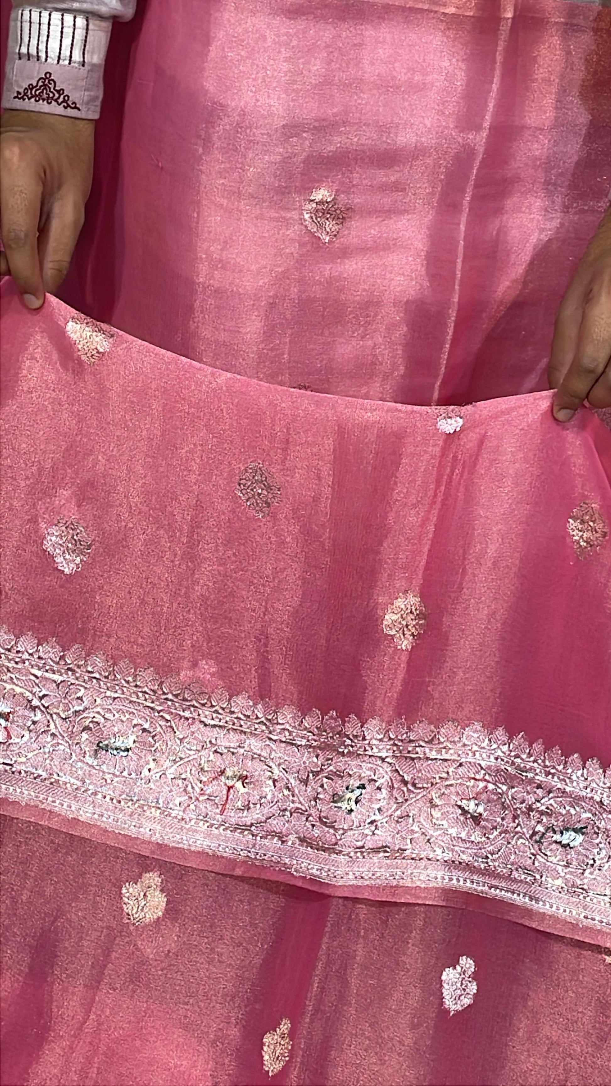 100% Authentic & Luxurious Pure Banarasi Khaddi Chiffon Tissue Saree Enchanting Rose Pink Colour