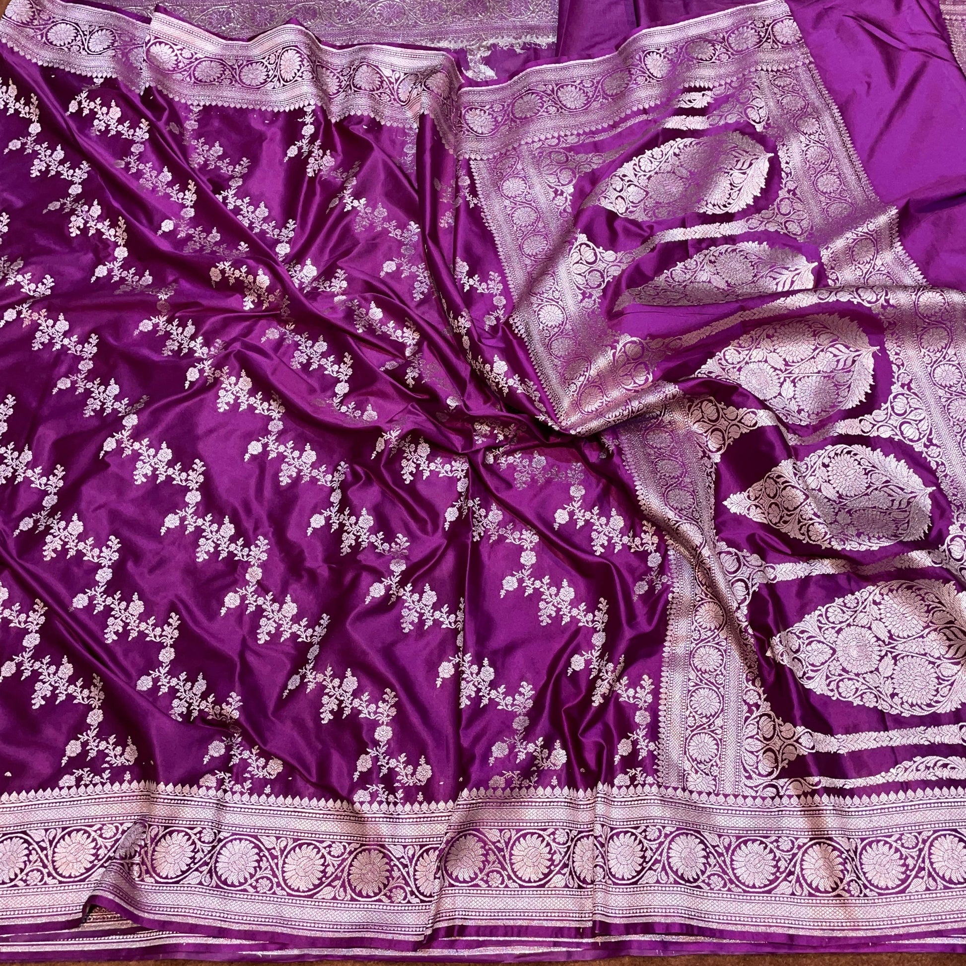 Bright Purple Laheria Water Zari Mashru Silk Saree